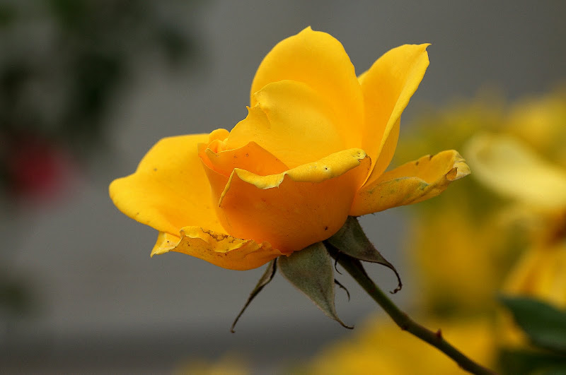 A Roseira é enorme, passa em arco por cima do Portão, já foi podada e não resta uma única folha, mas no dia de natal resta uma flor, a última Rosa.